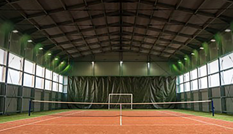 Вес каркаса для теннисного корта с 90 т доведён до 47 т без ухудшения несущей способности металлоконструкций.
